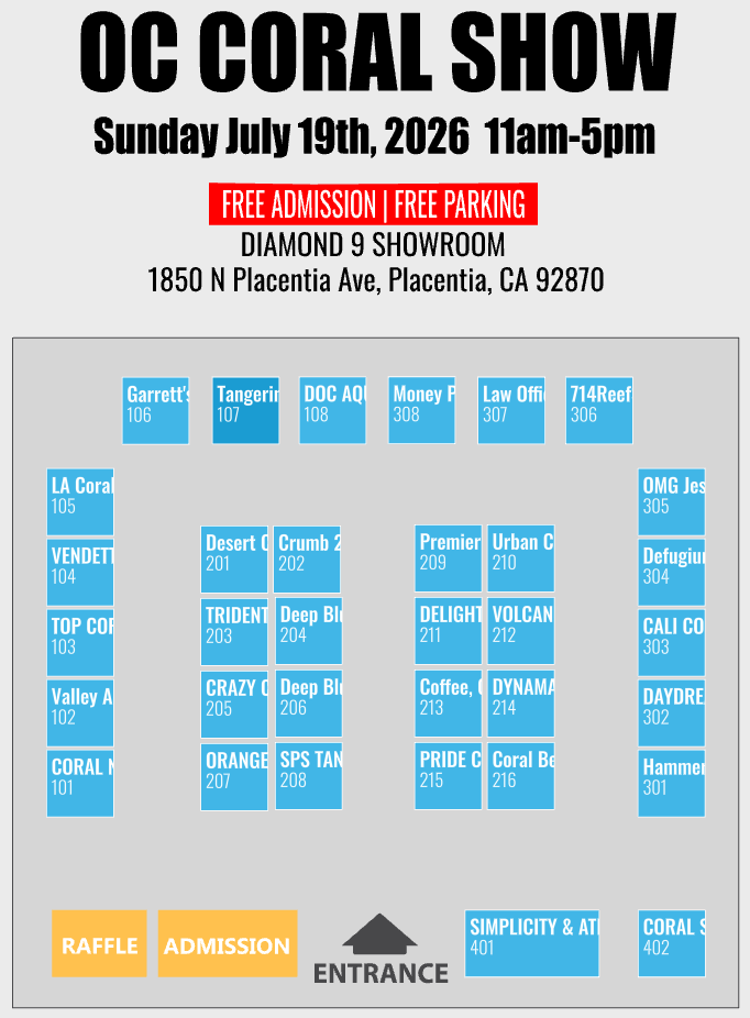 Selected vendors and thousands of coral frags and colonies in addition to fish and inverts!